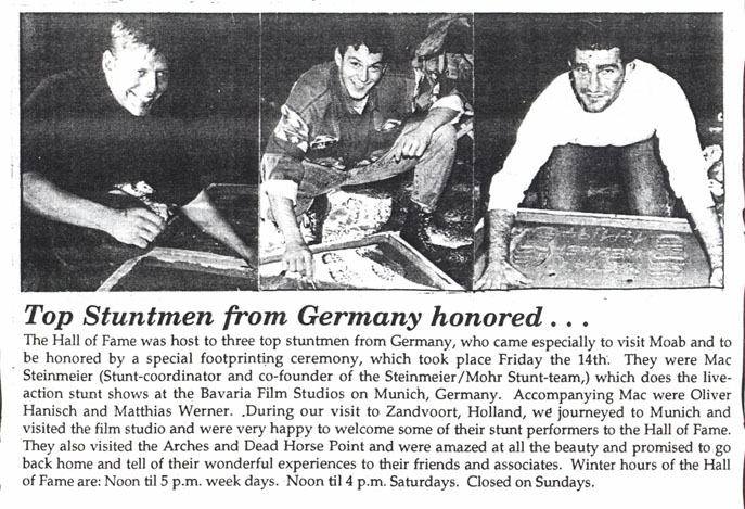 Anfang 1980 gründete Mac Steinmeier zusammen mit Michael Mohr die Firma Stuntteam Steinmeier & Mohr und entwickelte sich zu einem der gefragtesten Stuntunternehmen in Deutschland. 10 Jahre später expandierten wir.