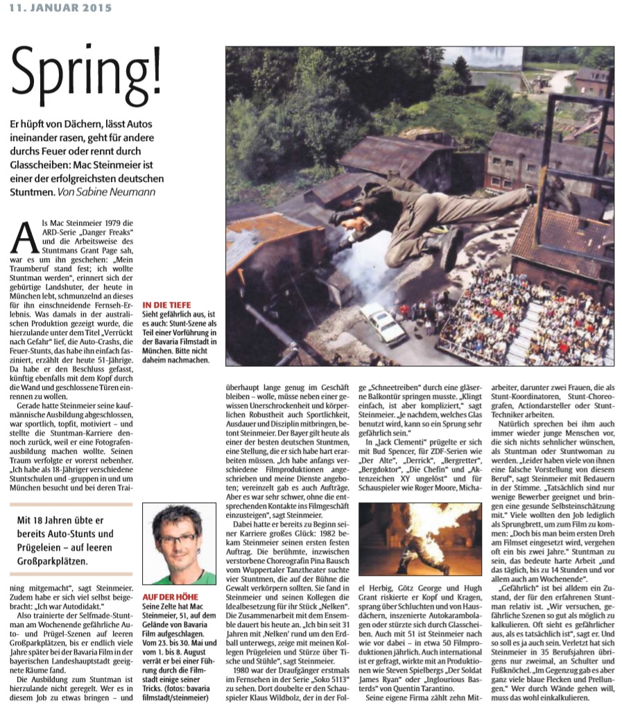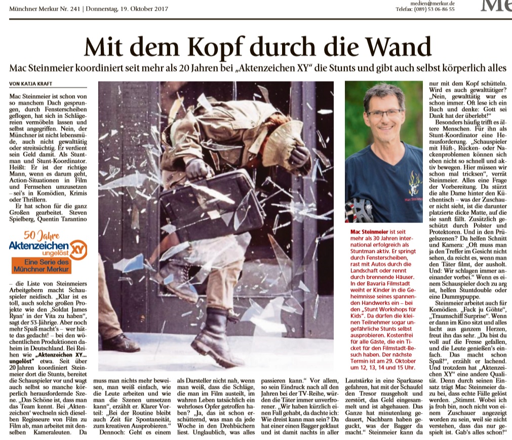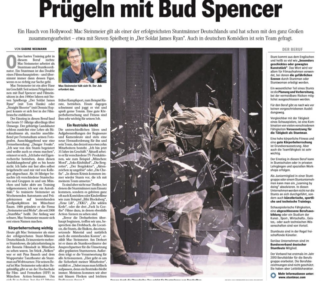 Mac Steinmeier mit seiner Firma StuntMac GmbH in Bayern ist im Münchner Süden zuhause und hat seine Räume in den Bavaria Filmstudios in Grünwald.